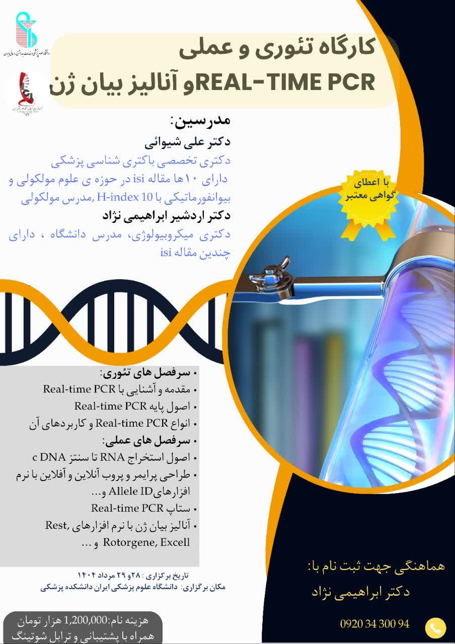 کارگاه تئوری و عملی Real-Time PCR این کارگاه طی دو روز کاری هر روز از 8.30 صبح تا15.30 عصر برگزار خواهد شد